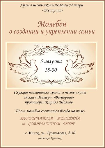 Анонс: 5 августа состоится молебен о создании и укреплении семьи.