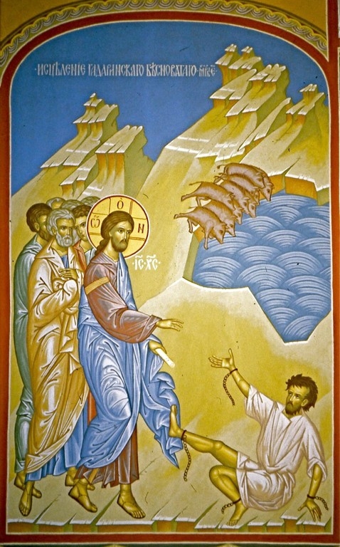 В сегодняшнем Евангельском чтении мы слышали рассказ о том, как Спаситель изгнал злых духов из гадаринских бесноватых. Эти несчастные одержимые более походили не на людей, а на хищных зверей и вызывали ужас во всем крае. Господь Иисус властным словом изгнал нечистых духов, и бесы, вышедши, пошли в стадо свиное. И вот, все стадо свиней бросилось с крутизны в море, и погибло в воде. После Божественной Литургии прозвучала проповедь настоятеля храма иконы Божией Матери “Всецарица” протоиерея Кирилла Шолкова.