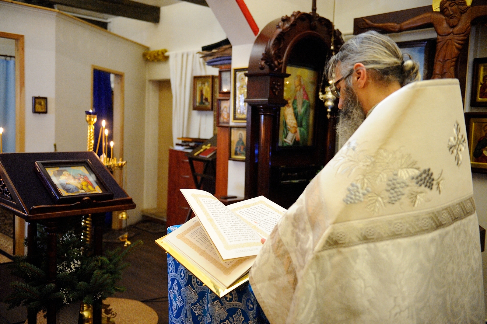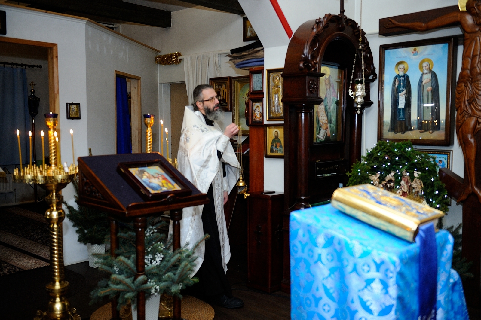 Навечерие Рождества Христова в храме “Всецарица”. Опубликовано 08.01.2017 автором Valentina 6 января 2017 года, в навечерие Рождества Христова, в храме иконы Божией Матери “Всецарица” состоялась великая вечерня с Литургией святителя Василия Великого. Так же была отслужена заупокойная лития по новопреставленной игумении Василиссе (Медведь).