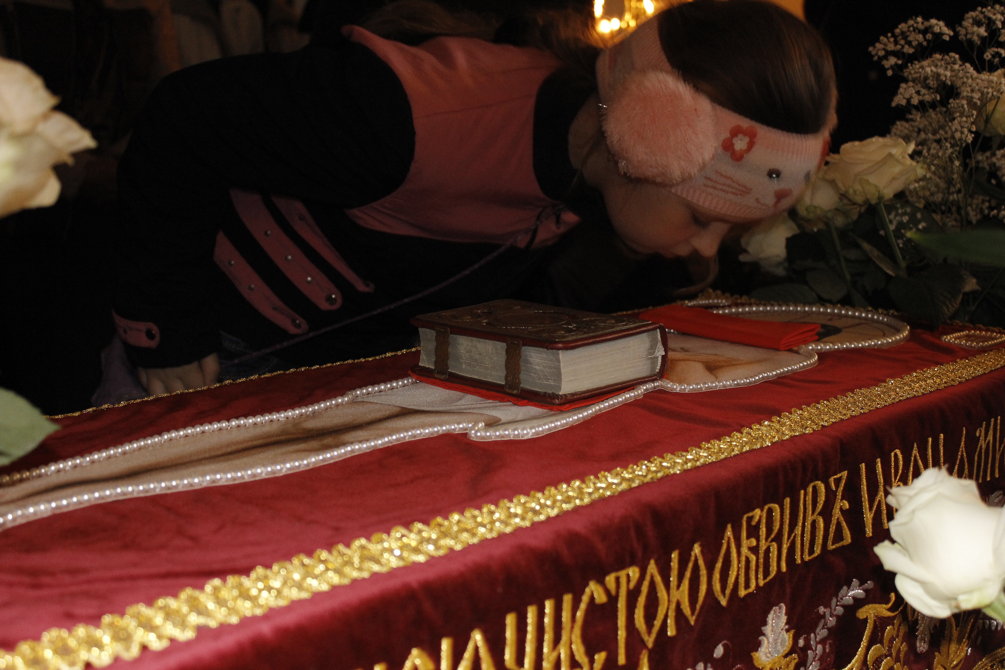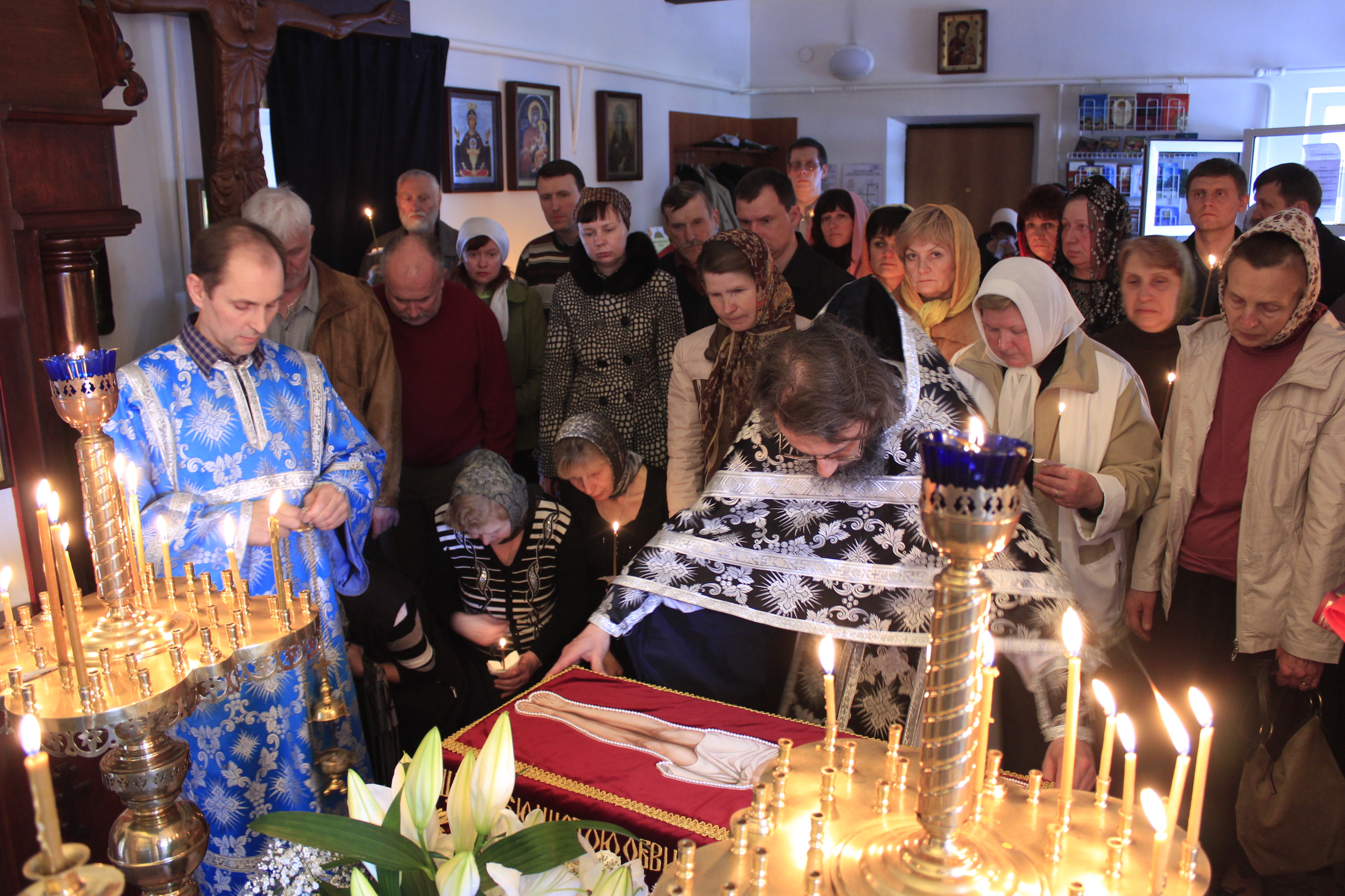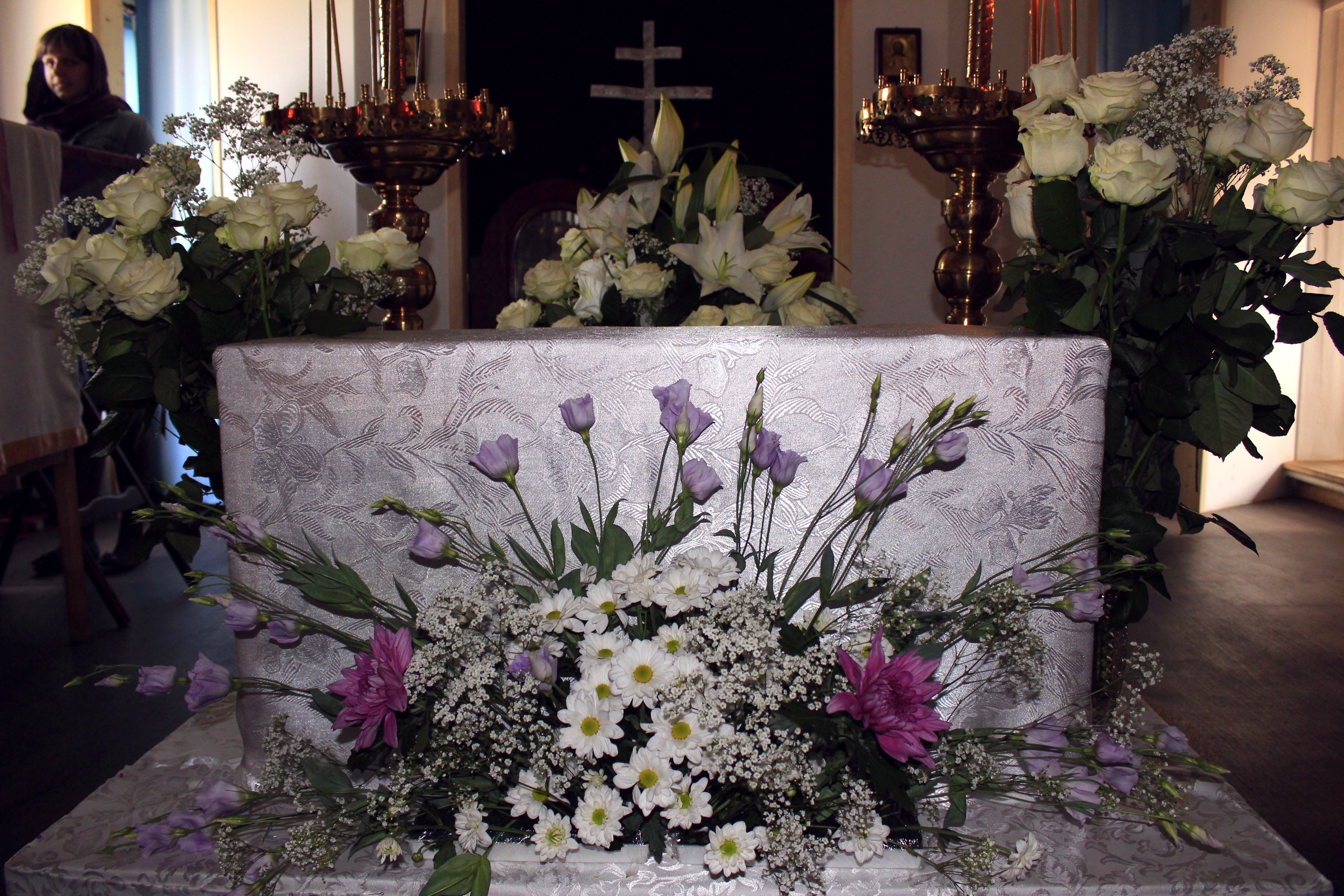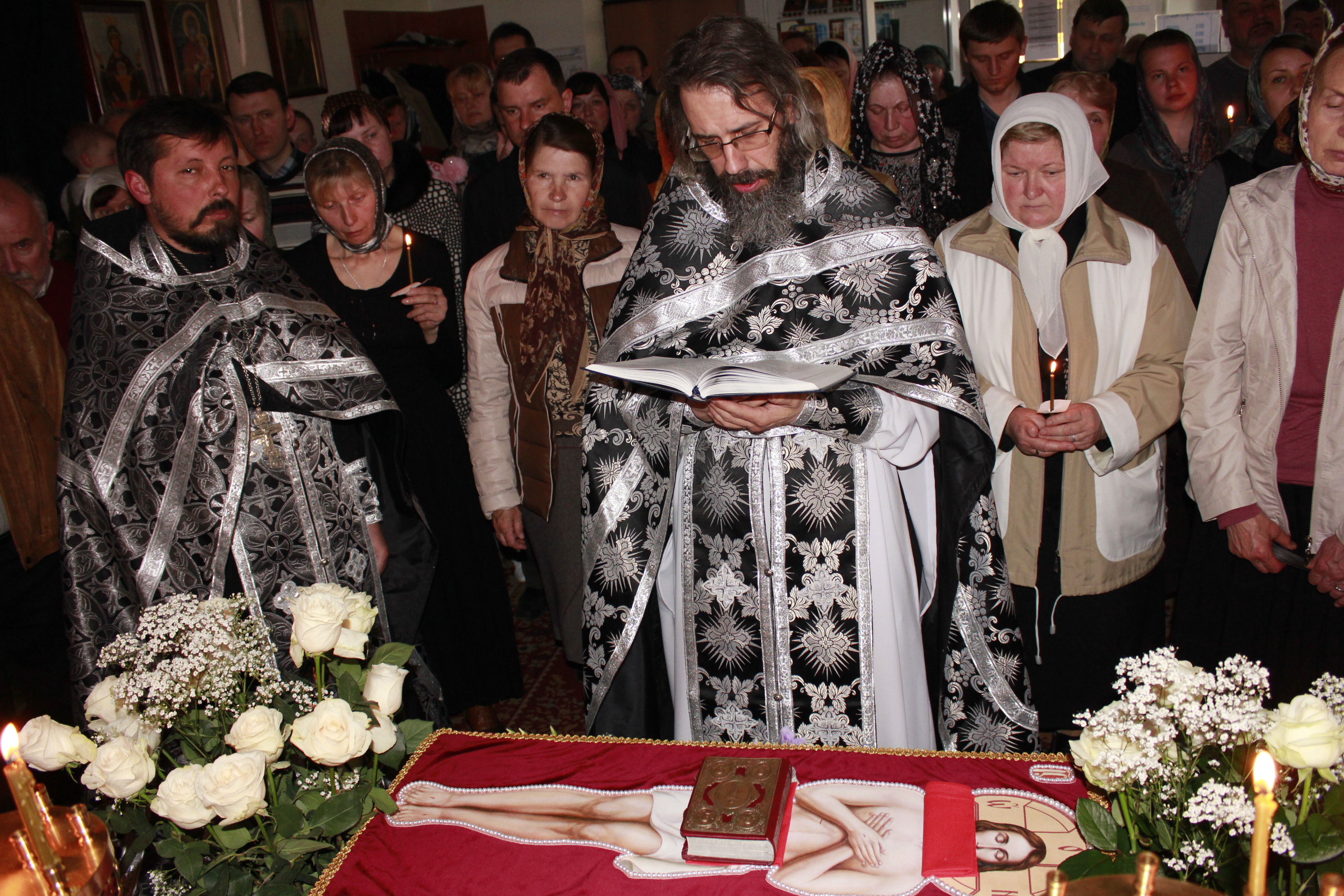 Вынос Плащаницы Опубликовано 19.04.2014 автором Valentina 18 апреля 2014 года в Великую Пятницу в храме иконы Божией Матери “Всецарица” выносили Плащаницу Господа нашего Иисуса Христа. После Малого Повечерия верующие совершали коленопреклоненные поклоны перед Святой Плащаницей и прикладывались к святыне.