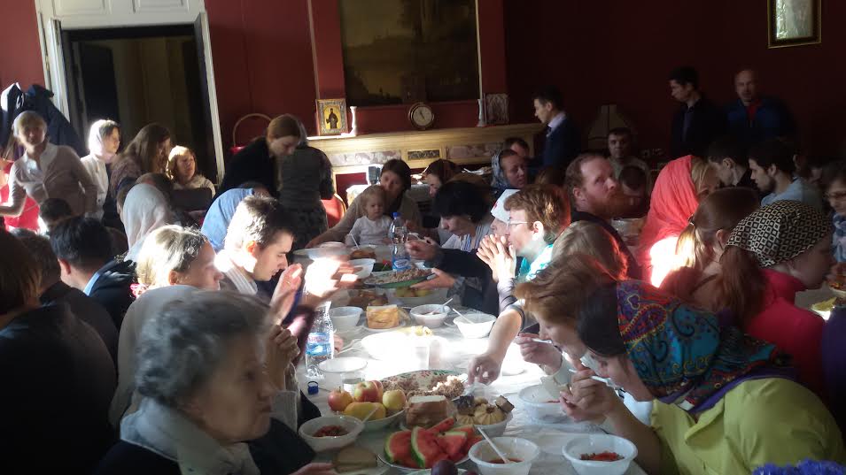 После Божественной литургии добровольцы, Епископ Пантелеимон и протоиерей Кирилл Шолков пили чай, делились наработками по разным направлениях социального служения.Протоиерей Кирилл Шолков ознакомился с работой Добровольческой службы “Милосердие”, организацией обучающих семинаров и тренингов для добровольцев. Священным Синодом Русской Православной Церкви (журнал №79 от 25 июля 2014 года) отмечена важность развития добровольческой деятельности в епархиях Русской Православной Церкви. Уже организованы дистанционное обучение приходских социальных работников, финансовая поддержка развития добровольческих центров через грантовый конкурс «Православная инициатива», методическая поддержка руководителей епархиальных отделов и приходских социальных работников.
