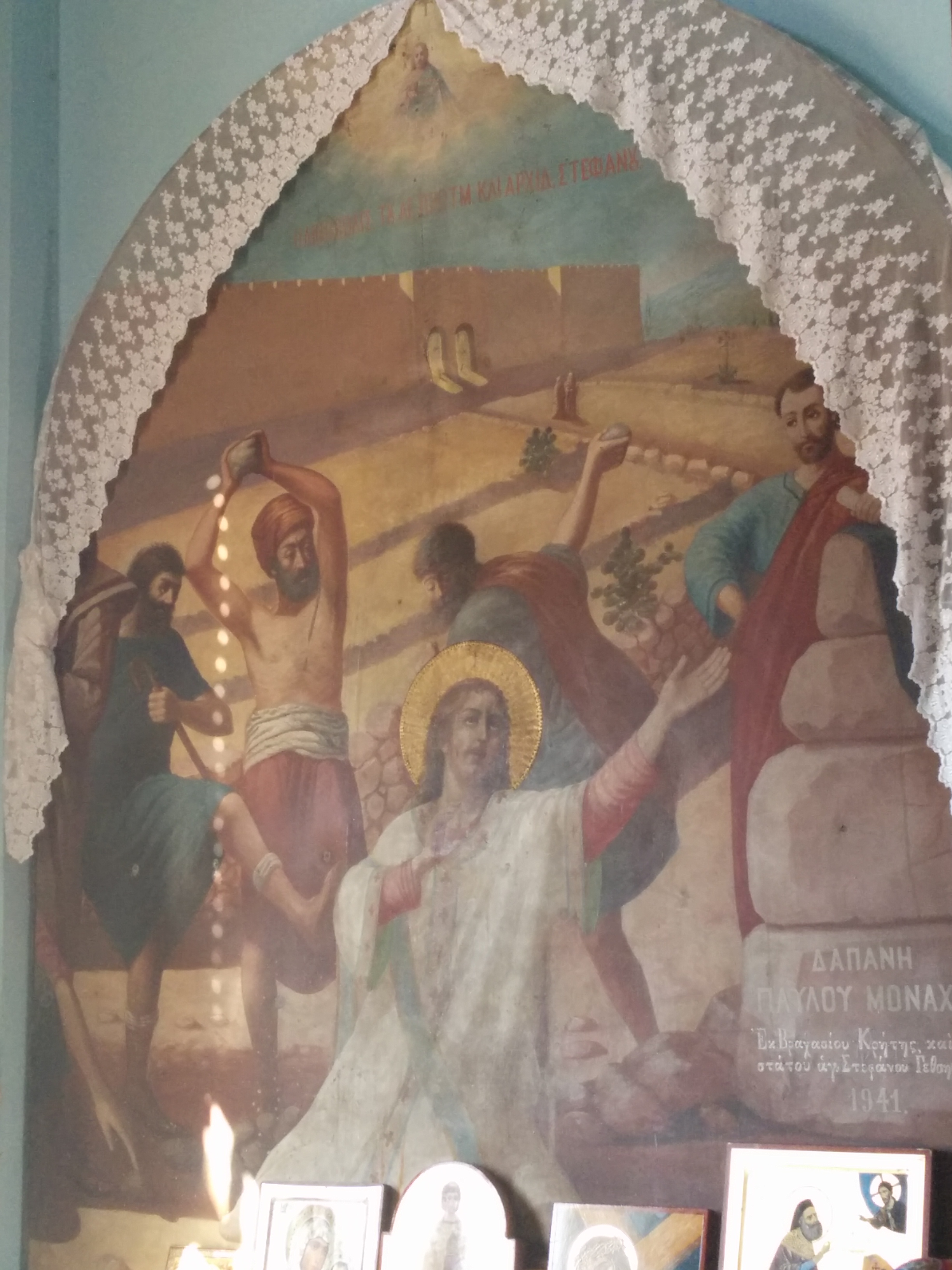 Напротив гробницы Божией Матери через дорогу виден небольшой храм; он воздвигнут на остатках древнего поставленного над местом убиения св. Первомученика и архидиакона Стефана. Паломники поклонились ступеням, где совершалось побиение камнями первомученика.