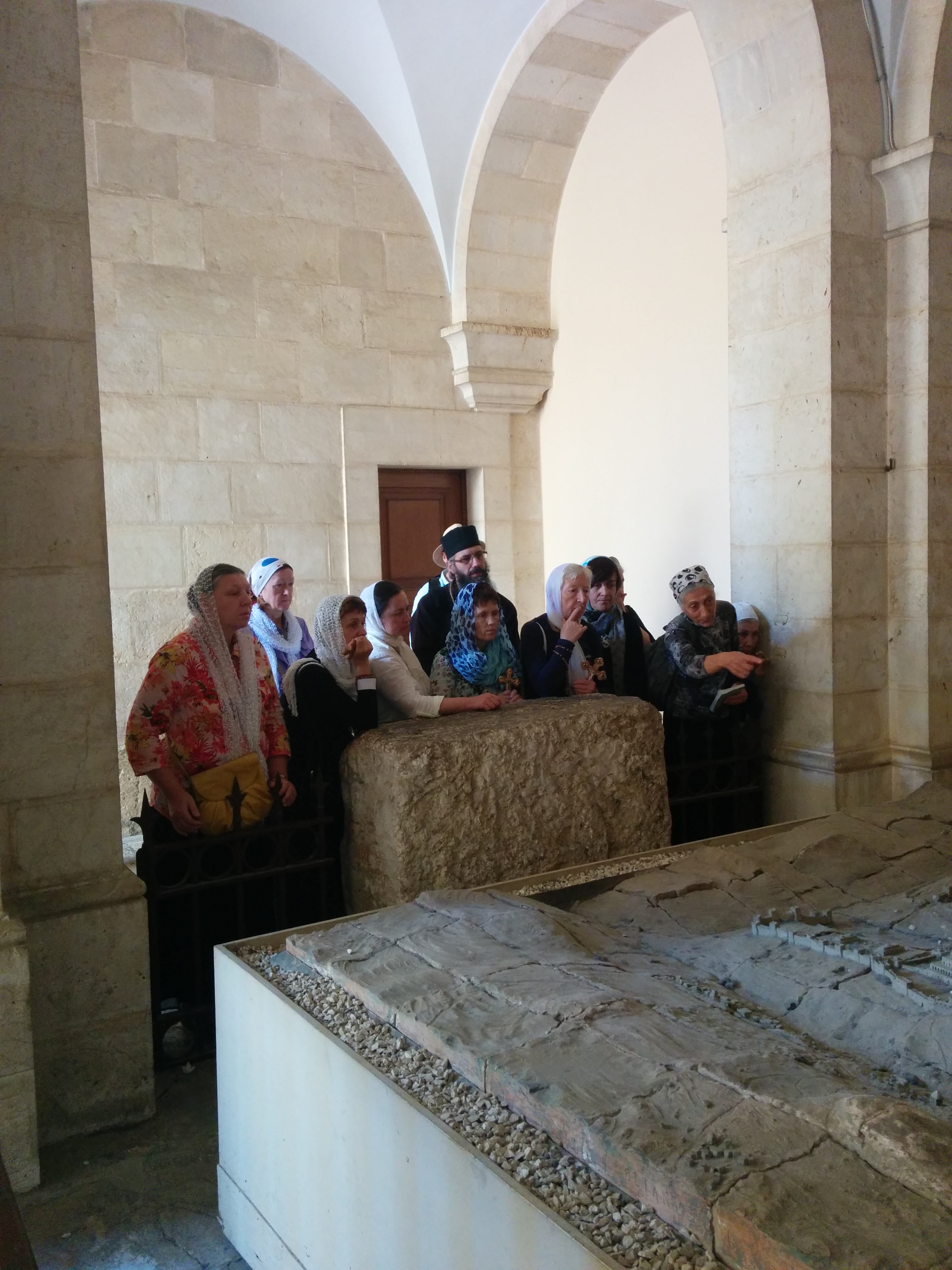 Третий день пребывания на Святой Земле начался с Божественной Литургии и причащения в Гефсимании – месте Успения Пресвятой Богородицы. В 5-м веке над гробницей Пресвятой Девы был поставлен храм. Сама гробная пещера обращена, как и Кувуклия Гроба Господня, в часовню: каменное ложе, на котором три дня покоилось непорочное тело, служит и поныне Престолом для совершения Божественной Литургии.