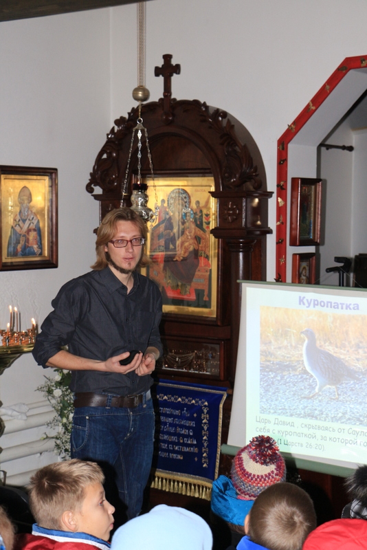IMG_431516 ноября в храме иконы Божией Матери “Всецарица” прошла познавательная беседа для детей и их родителей о чуде Божьего творения – птицах. Перед воспитанниками воскресной школы выступили Юшкевич Сергей, специалист по направлению “Церковь и охрана окружающей среды” Центра Экологических Решений, а также Шайкин Руслан – заместитель директора по учебной работе ГУО “Начальная школа №29 г. Минска”, орнитолог.