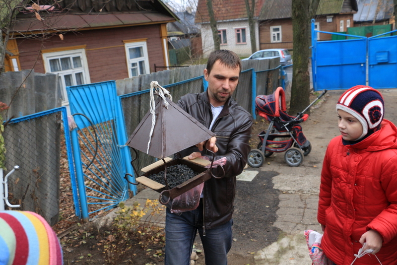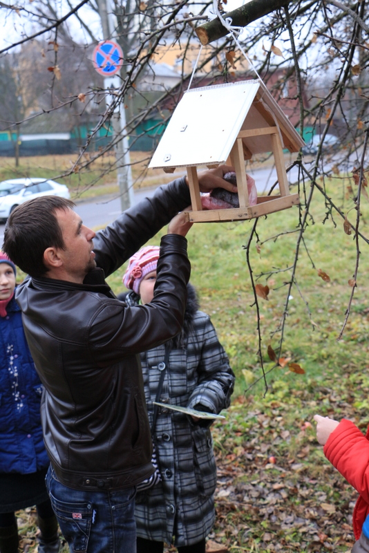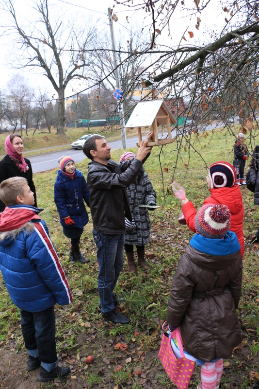 По завершению занятия дети вышли во двор храма и вместе со взрослыми повесили три кормушки для птиц. Теперь холодной порой на территорию Храма иконы Божией Матери “Всецарица” смогут прилетать все зимующие птицы к кормушкам, устроенным добрыми детскими руками.