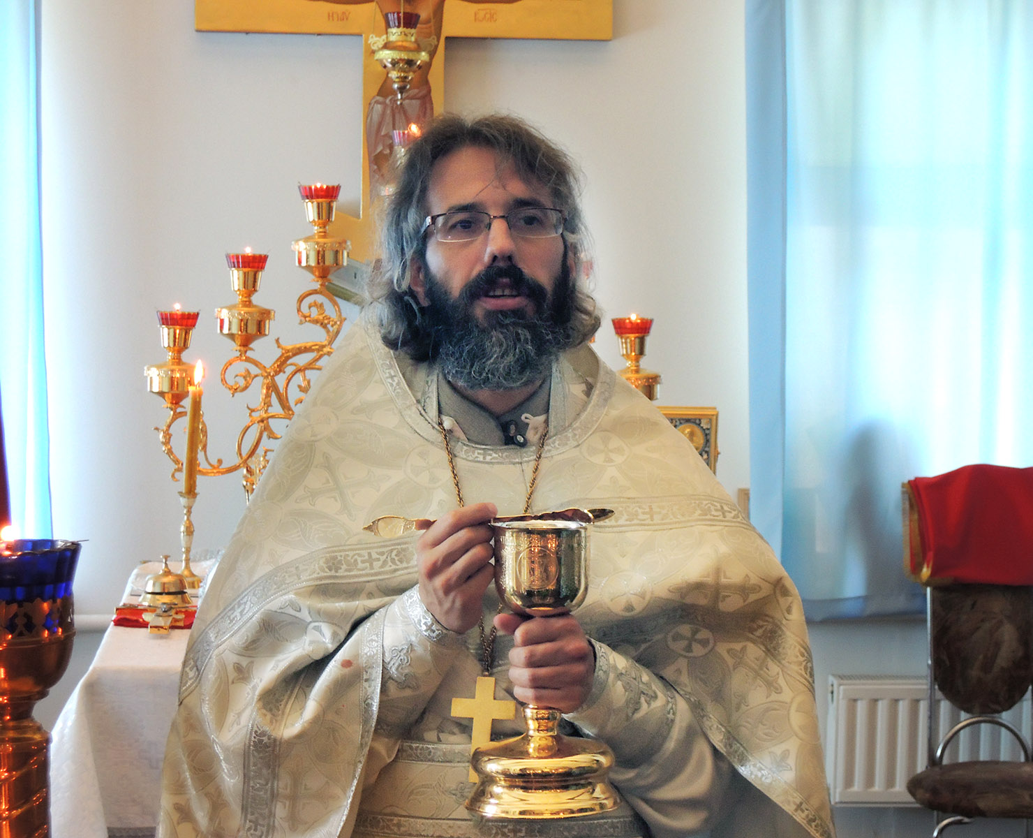 Праздничную Божественную Литургию в этот день совершил настоятель храма иерей Кирилл Шолков, в сослужении иерея Димитрия Ворсы. По окончании литургии был отслужена великая вечерня вовремя, которой собравшиеся в храме вознесли коленопреклоненные молитвы.