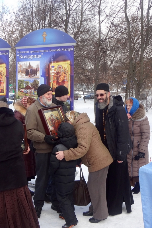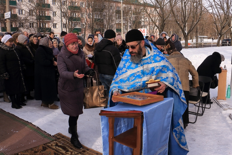 Все желающие принять участие в этом радостном событии собрались возле поклонного креста по улице Железнодорожной, рядом со станцией метро “Михалово”, в месте которое выделено под строительство новой церкви. Чин освящения начался с соборного пения молитвы “Царю Небесный”. Морозная погода не смутила верующих, а появившиеся на небе солнце во время пения предало сил продолжать молитву. После чина освящения креста состоялся крестный ход вокруг земельного участка, выделенного под строительства. Верующие шли с тропарем иконе Божией Матери “Всецарица” на устах: “Образом радостотворным честныя Всецарицы, Желанием теплым взыскающих благодати Твоея спаси, Владычице; избави от обстояний к Тебе прибегающих; от всякия напасти огради стадо Твое, к заступлению Твоему взывающее присно”. По заврешению крестного хода все пришедшие на чин освящение смогли приложиться к поклонному кресту, иконе Божией Матери “Всецарица” и иконе Преподобного Харитона Исповедника. Протоиерей Игорь (Коростелев) поздравил прихожан храма иконы Божией Матери “Всецарица” с знаменательным событием в жизни прихода и пожелал Божией помощи в возведении храма.