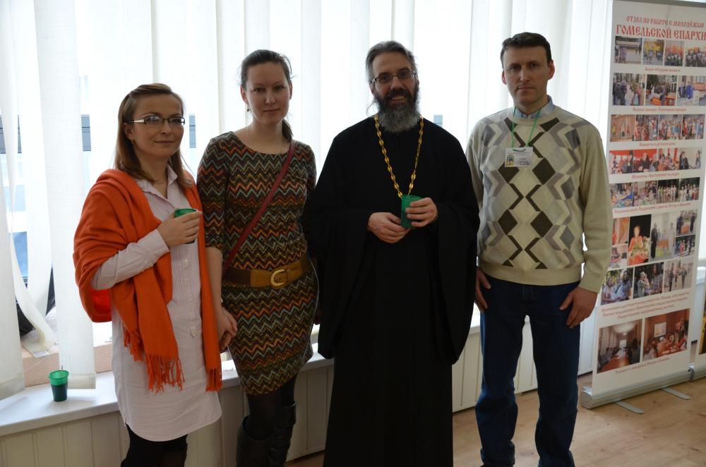 Перед собравшимися выступил председатель Синодального отдела БПЦ по церковной благотворительности и социальному служению протоиерей Кирилл (Шолков). Вместе с группой прихожан храма иконы Божией Матери “Всецарица” отец Кирилл поделился опытом в сфере социального служения и рассказал о перспективах участия православной молодежи в социальных проектах. В ходе беседы были затронуты вопросы необходимости организации добровольческого движения, перенятия опыта наших московских коллег из православной службы помощи “Милосердие”, участия наших белорусских братств в социальном служении. Отец Кирилл отметил, что Синодальный отдел БПЦ по церковной благотворительности и социальному служению, а так же храм иконы Божией Матери “Всецарица” всегда открыты для молодежных инициатив, которые можно уже сегодня присылать на электронный адрес прихода pantanassa.by@gmail.com