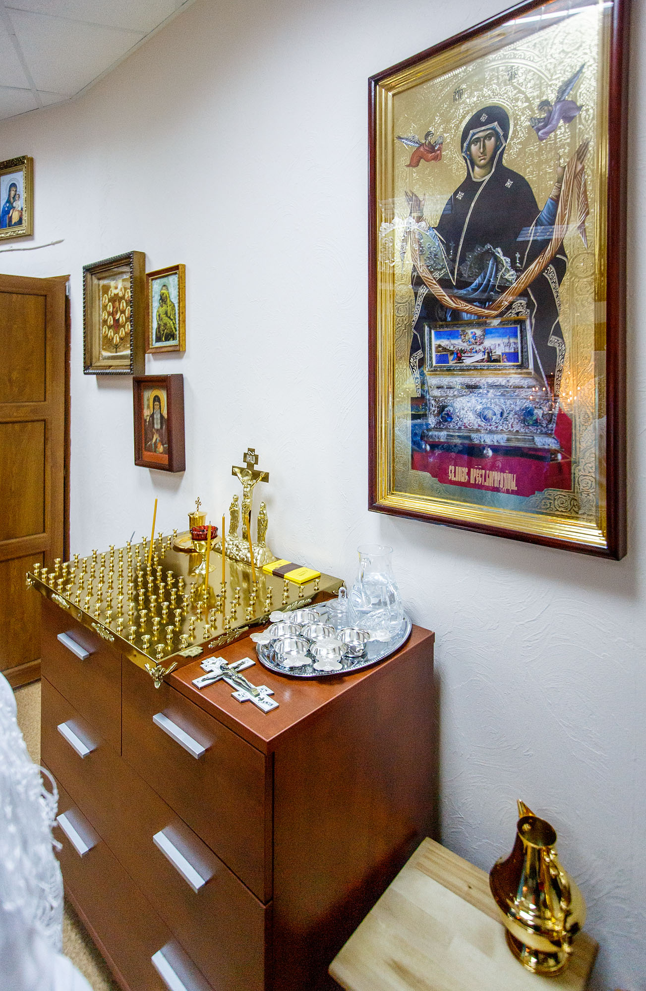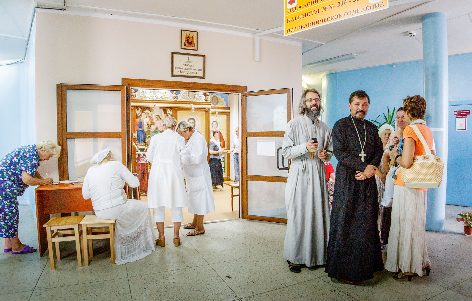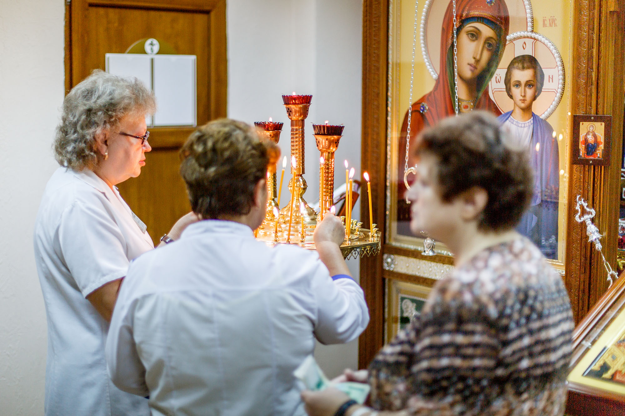 Сегодня в больничной часовне в честь иконы Божией Матери “Всецарица“ Минского городского клинического онкологического диспансера все присутствующие возносили молитвы Святому великомученику и целителю Пантелеймону. Наши прихожане очень любят этого Святого. В больничной часовне хранится икона с частицей его мощей.