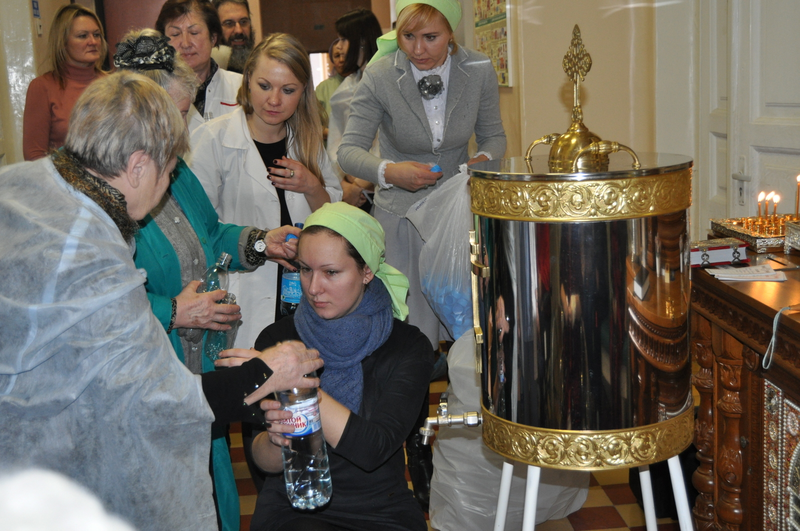 Утром, 19 января, протоиерей Кирилл Шолков совершил Крещенский Богоявленский водосвятный молебен в часовне Минского городского клинического онкологического диспансера. Пациенты и сотрудники онкодиспансера приняли участие в совместной молитве. Затем освящение воды было совершено в отделении паллиативной медицинской помощи «Хоспис» при 11-й городской клинической больнице, после чего добровольцы передали вещи, собранные в результате акции, проведенной в магазине “Калі ласка”. 20 января водосвятный молебен был совершен в часовне на территории Республиканского научно-практического центра медицинской экспертизы и реабилитации в посёлке Городище, затем все желающие смогли взять воду.