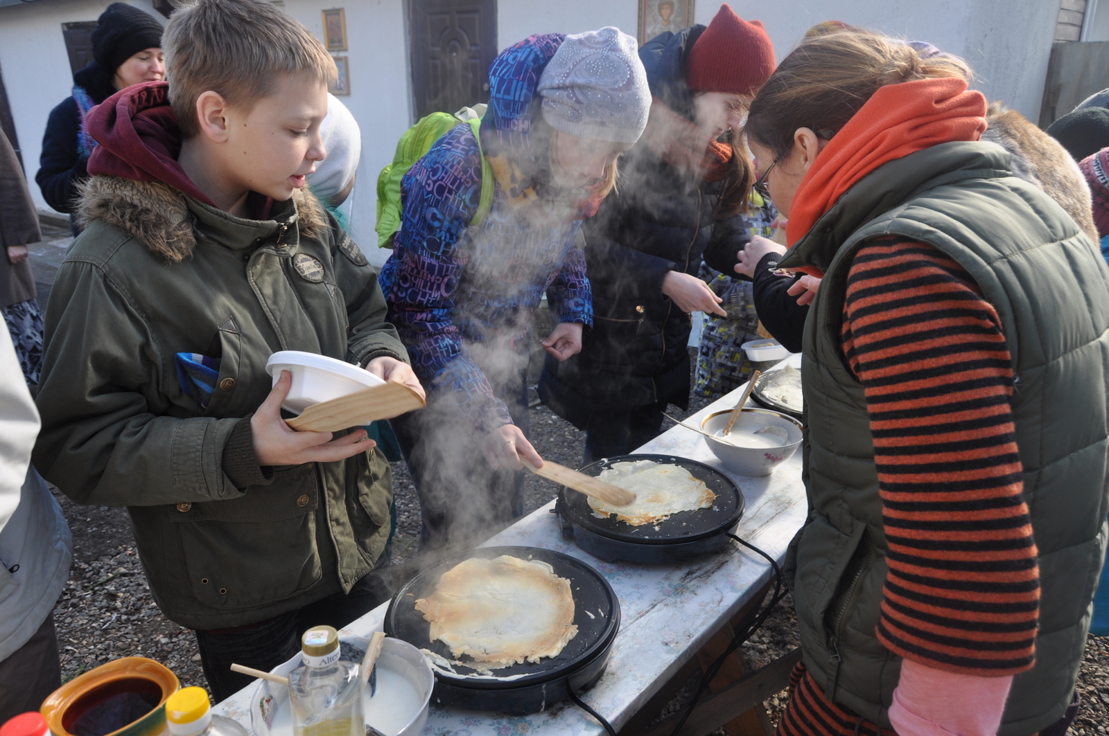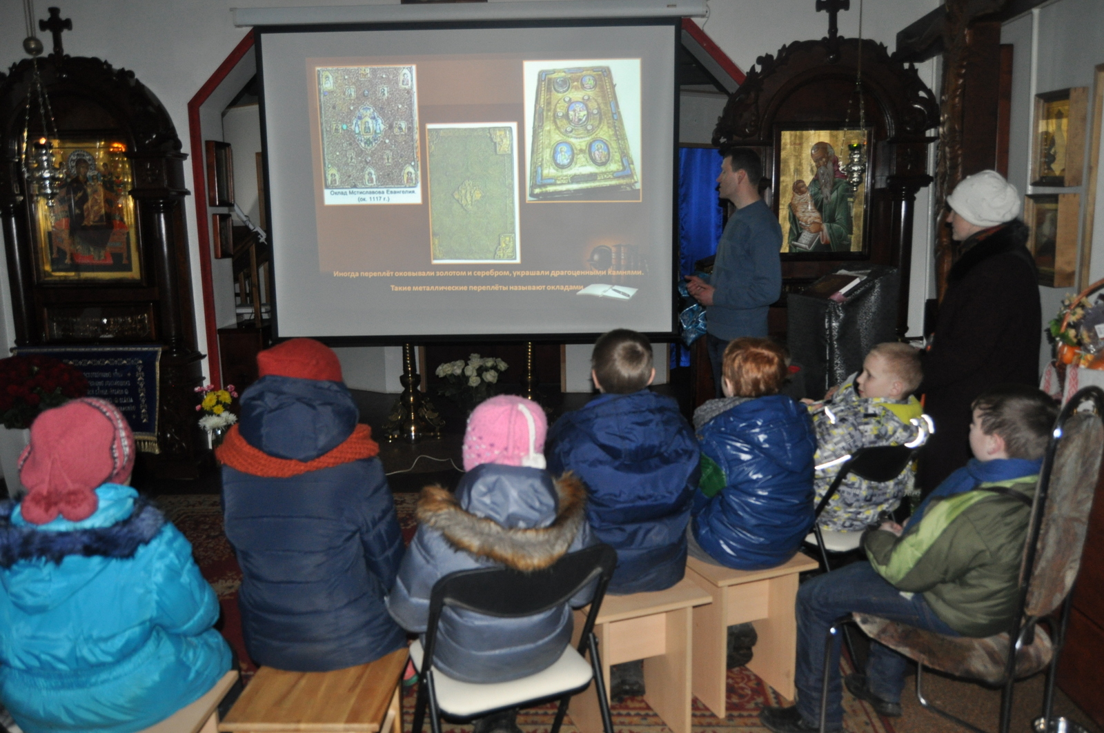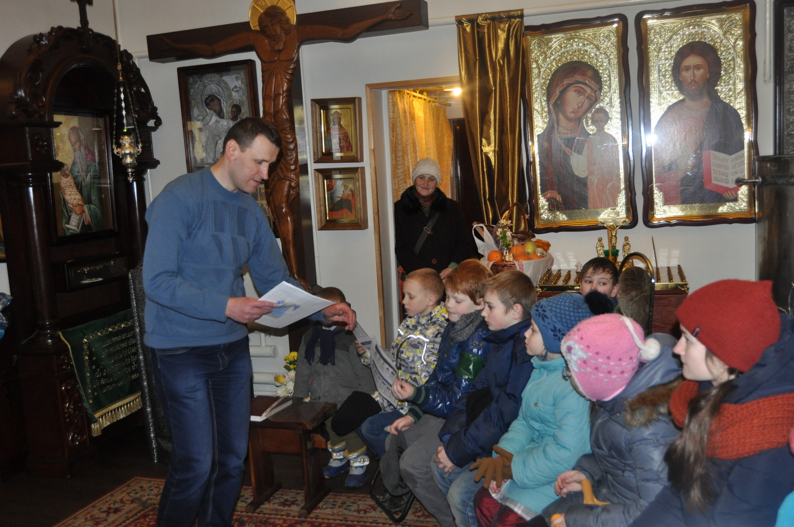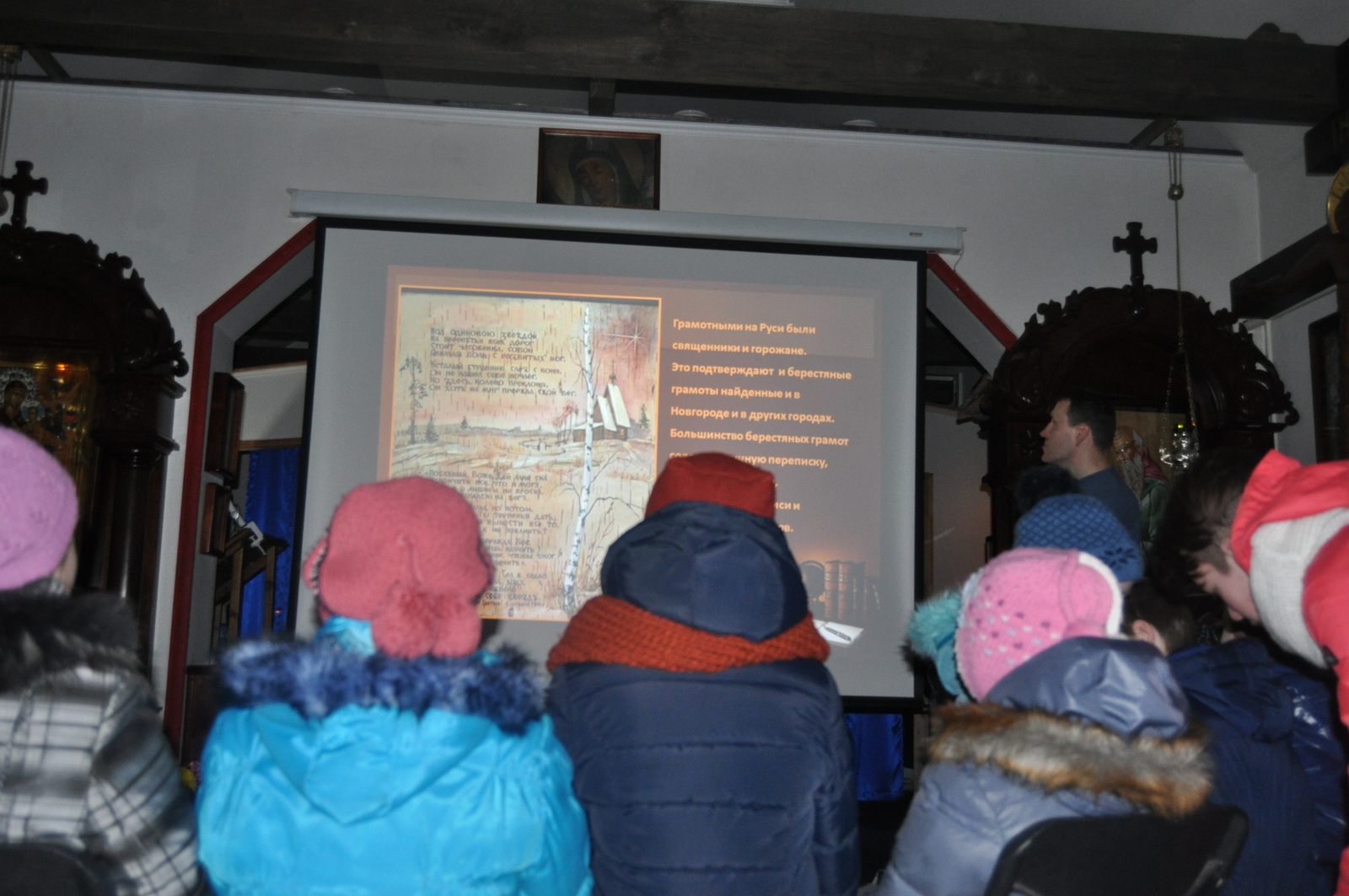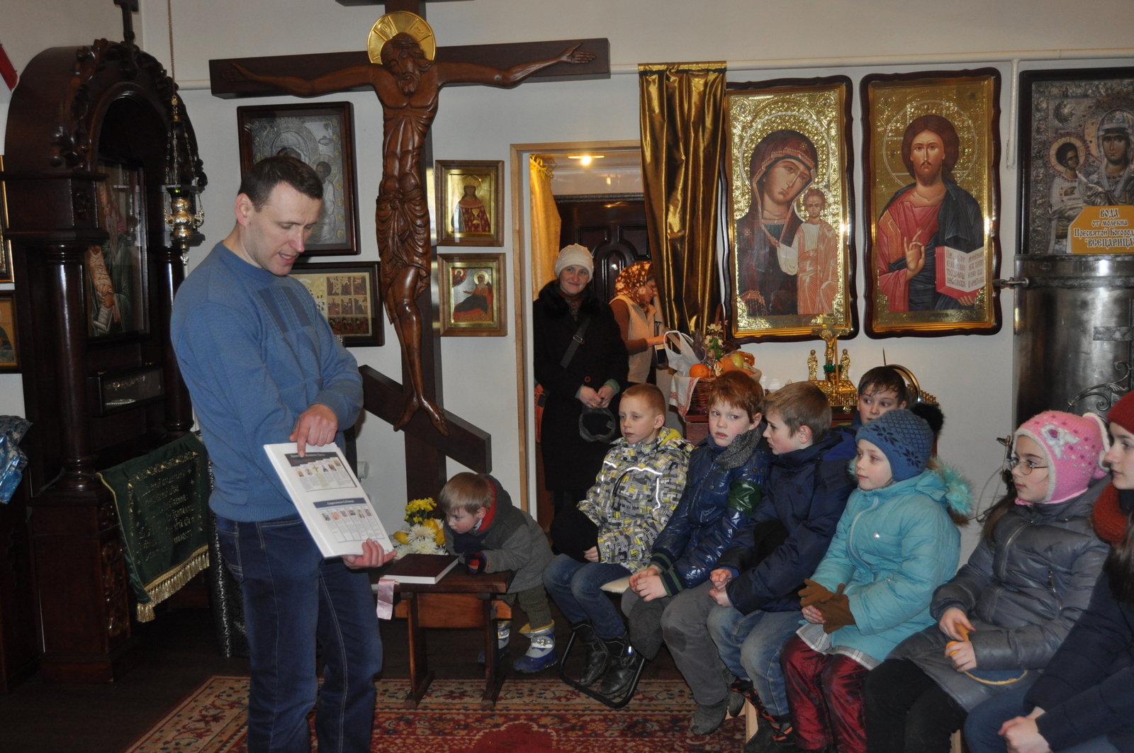 В этом году празднование Дня православной книги совпало с последним днем масленицы – Прощенным воскресением. После Божественной Литургии учащиеся воскресной школы вместе с родителями и преподавателями по участвовали в мастер-классе по изготовлению блинов. После сытной трапезы, детей ждала познавательная викторина на тему письменности и православной книги. Задание были выстроены таким образом, чтобы дети повторили Недели Великого Поста, а так же узнали о развитии письменности на белорусской земле. Финальным заданием для учащихся стал поиск книги «Апостол» в храмовой библиотеки. Настоятель храма иконы Божией Матери “Всецарица” протоиерей Кирилл Шолков подарил воспитанникам воскресной школы экземпляр «Апостол» для изучения на занятиях. После викторины учащиеся посмотрели презентацию на тему “Рождение славянской письменности”. Дети поделились рассказами о православных книгах, которые находятся у них в домашних библиотеках. Домой каждый ребенок ушел с календарем Великого Поста.