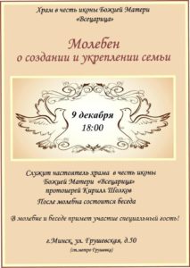 9 декабря приглашаем всех на Молебен о создании и укреплении семьи!
