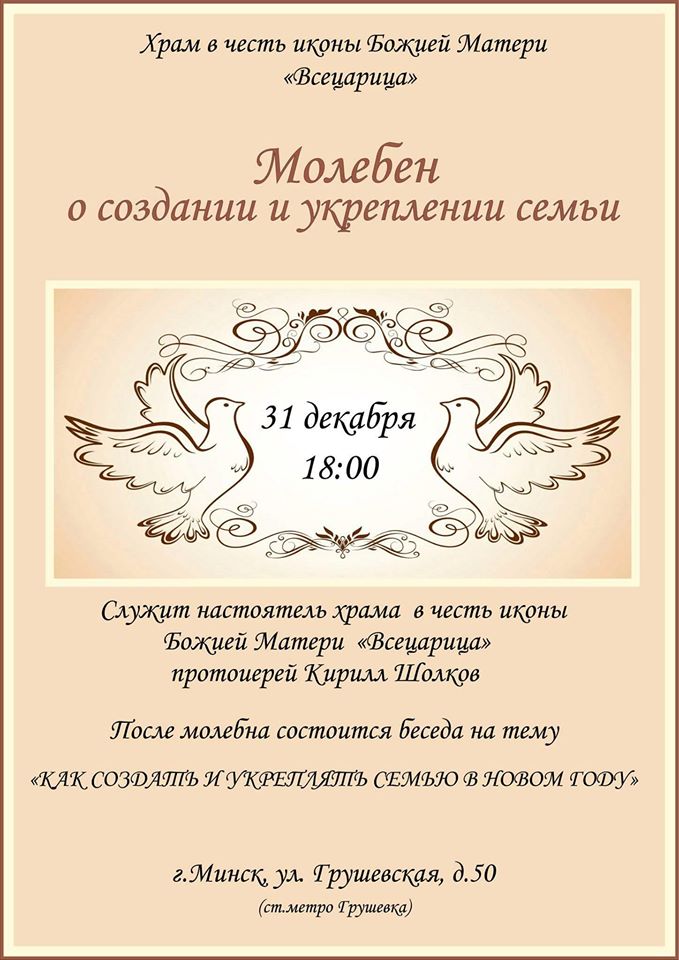31 декабря состоится Молебен о создании и укреплении семьи.