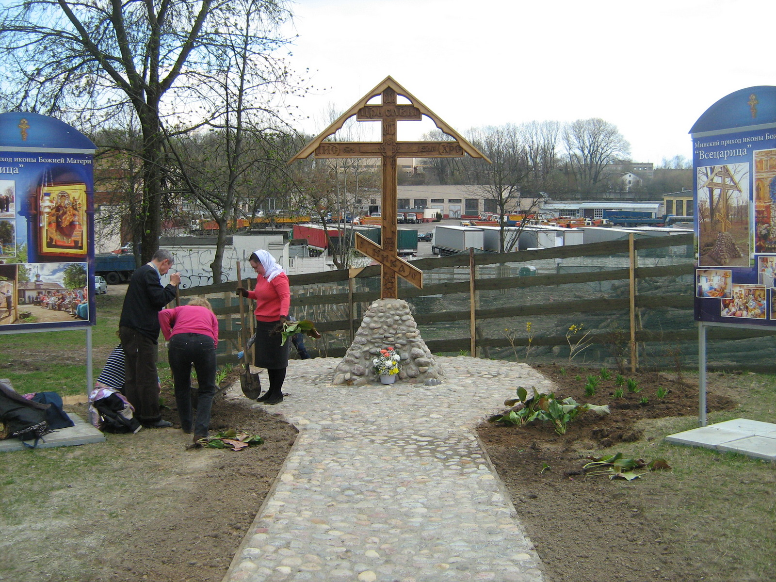 Возле поклонного креста на месте строящегося храма иконы Божией Матери “Всецарица” (район ул. Железнодорожной, 27) прошли работы по озеленению территории. Работники центрального ботанического сада НАН Беларуси совместно с прихожанами создали красивые композиции из декоративных лиственных и многолетних растений.