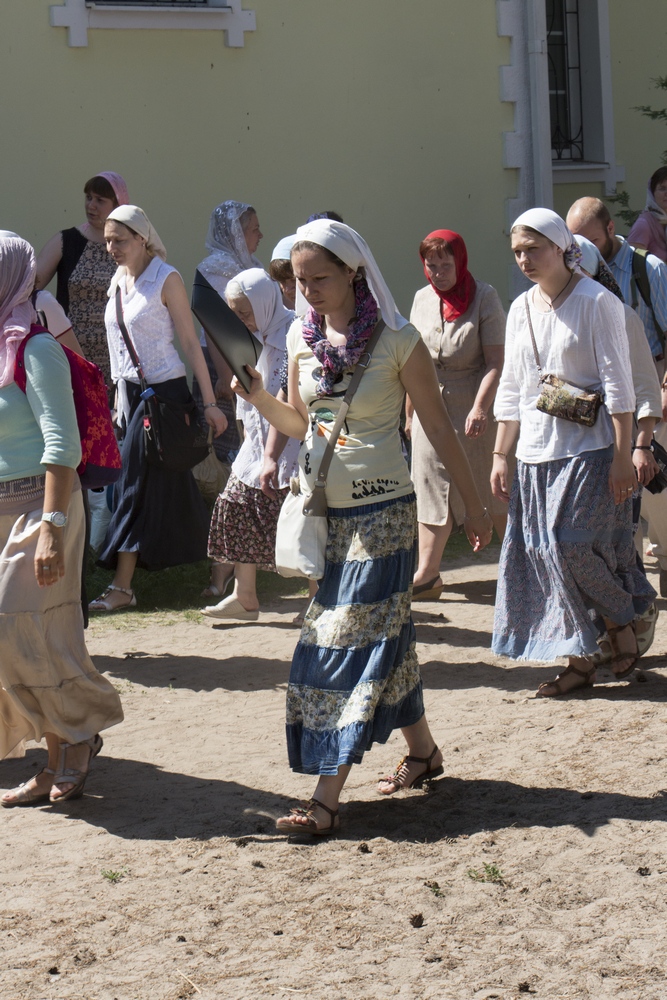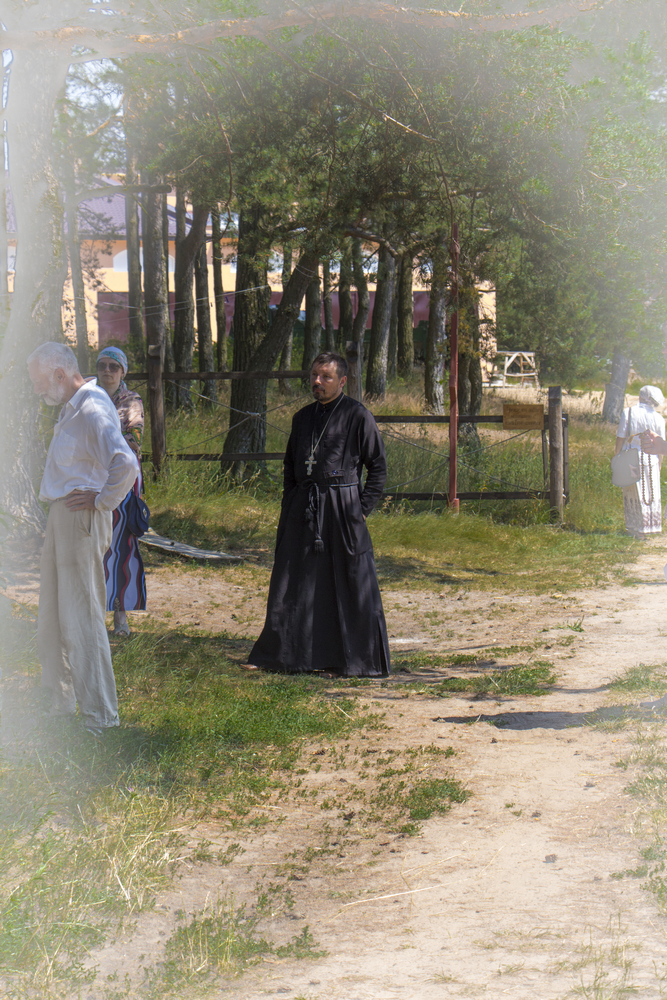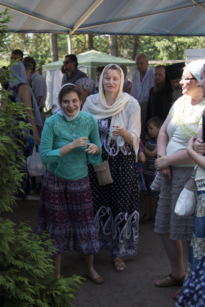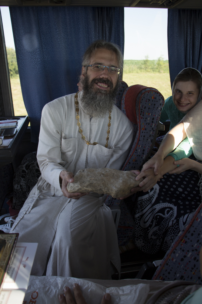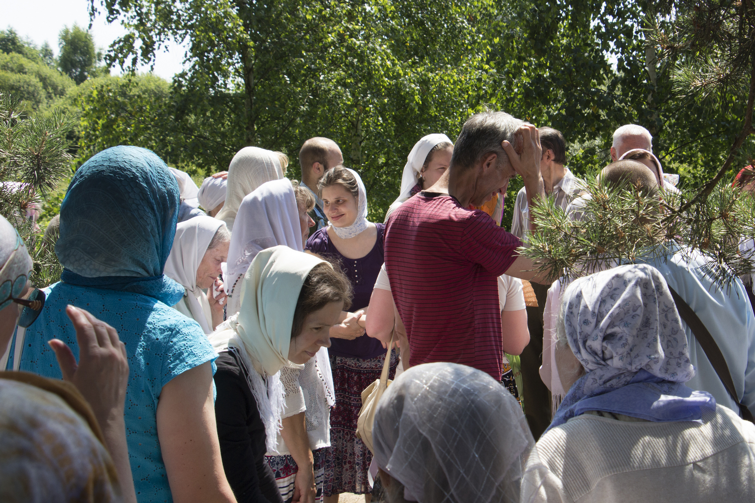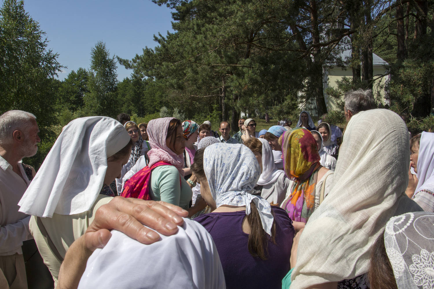 Жаркая погода не сломила духа прихожан и добровольцев, и подкрепившись паломники отправились молитвенно потрудиться. Читая молитву “Богородица Дева радуйся” с четками в руках паломники прошли путь вокруг монастыря вдоль вырытой канавки. Вернувшись к воротам монастыря прихожане и добровольцы отправились на беседу с игуменом обители. В ходе беседы были затронуты важные вопросы миссии христианина в мире, познания Воли Божией и воспитания детей. Отец Евсевий щедро поделился своим пастырским опытом, а также поддержал добровольцев в их стремлении творить дела милосердия.