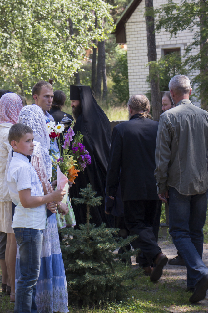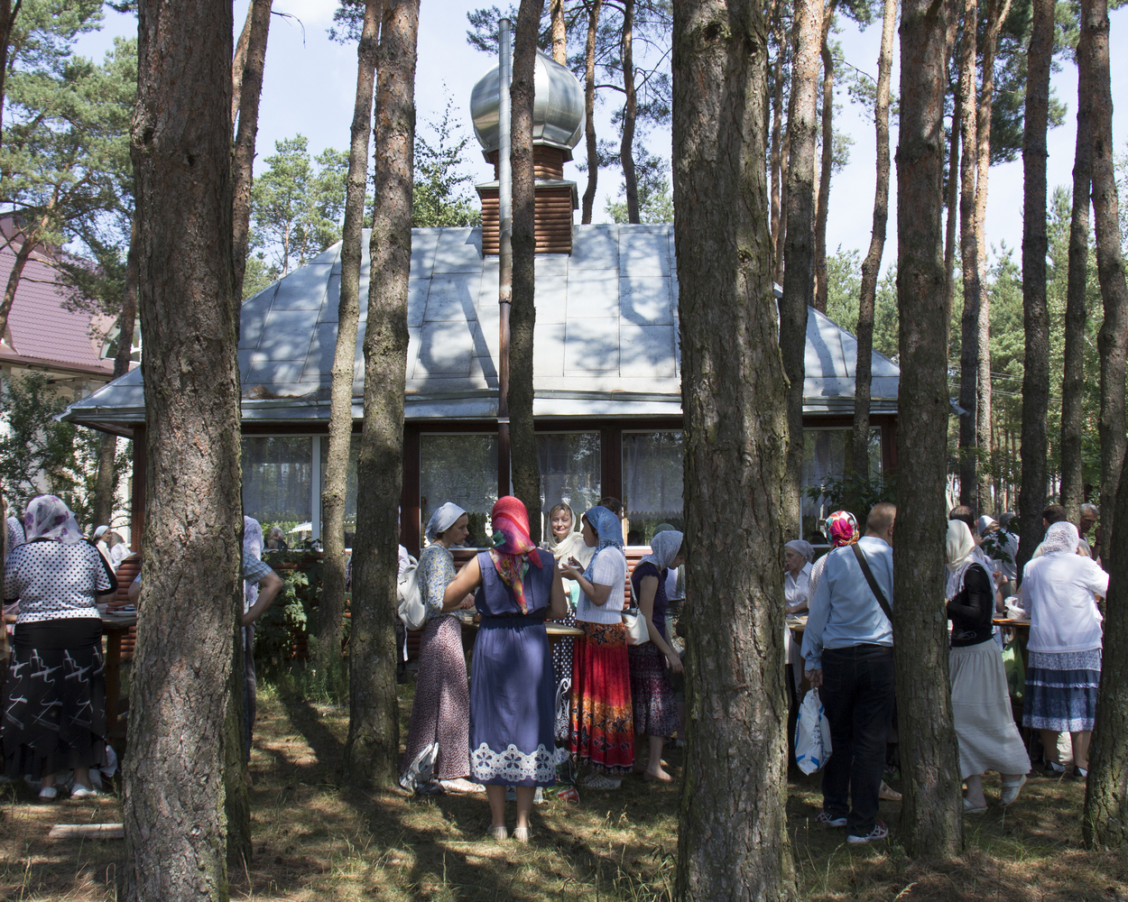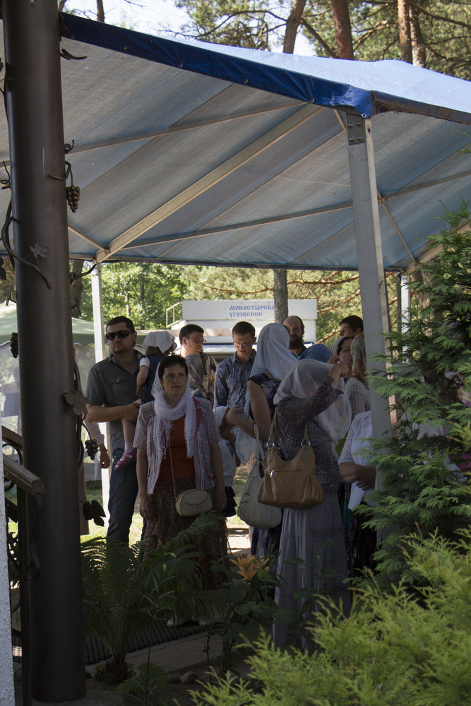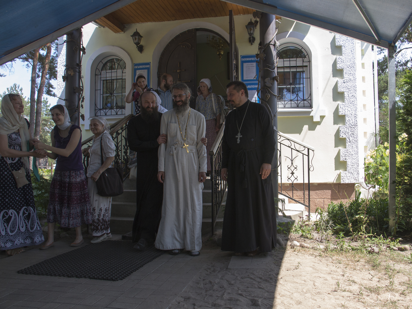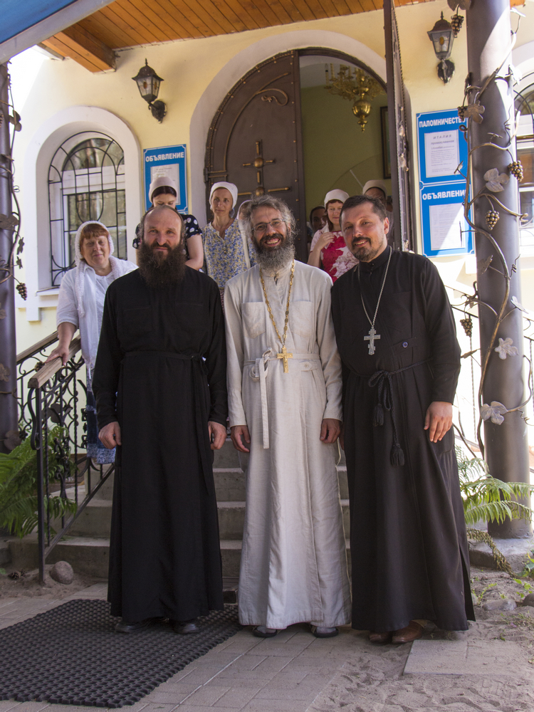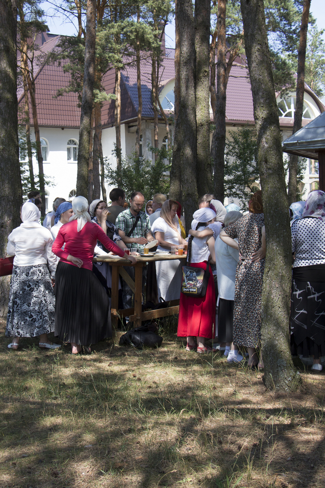 По приезду в Святую обитель паломники сразу отправились на Божественную Литургию. Так как исповедь прошла в нашем храме накануне, то в монастыре все прихожане и добровольцы имели возможность причаститься Святых Христовых Тайн. Знаменательно, что акция от “Святыни к Святыне” совпала с днем Ангела игумена Евсевия, наместника Святой обители. Именно 5 июля день памяти Священномученика Евсевий, епископа Самосатского. Праздничную Божественную Литургию в этот день в монастыре возглавил протоиерей Кирилл (Шолков), настоятель храма иконы Божией Матери “Всецарица”, в сослужении с иереем Димитрием (Ворсой), клириком храма иконы Божией Матери «Всецарица», иереем Евгением (Бартошевичем), клириком Свято-Елисеевского Лавришевского мужского монастыря. После воскресной проповеди протоиерей Кирилл (Шолков) от лица прихода храма иконы Божией Матери “Всецарица” поздравил игумена Евсевия с днем Ангела, поблагодарил за возможность послужить Литургию, а также за теплый прием паломников в Святой обители. По завершению Богослужения состоялась праздничная трапеза для братии и паломников монастыря.