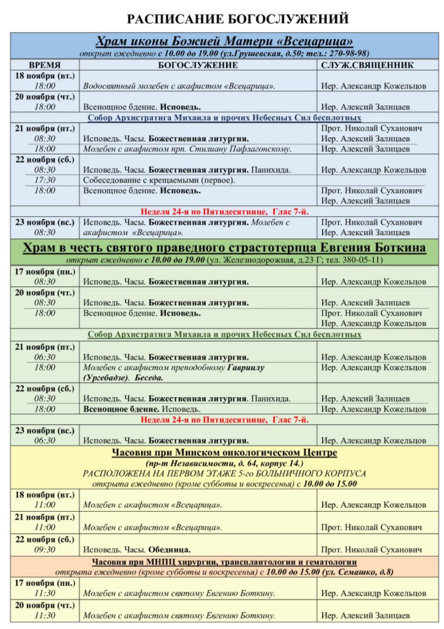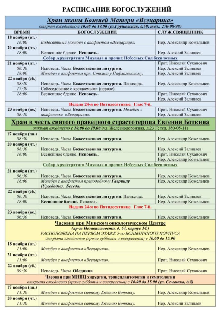 Расписание богослужений